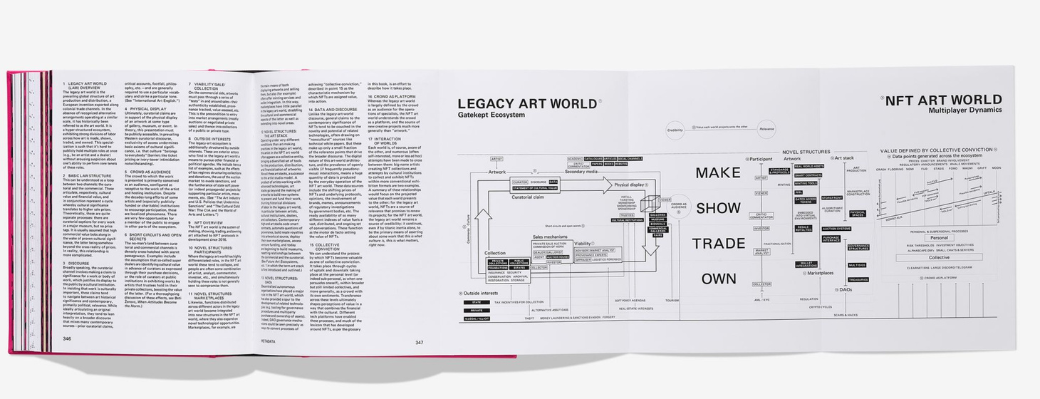 with its own sentiments. Transference across these levels ultimately shapes perceptions of value, combining the financial with the cultural. Different tech platforms have enabled these processes, and much of the lexicon that has developed around NFTs, as per the glossary in this book, is an effort to describe how it takes place.